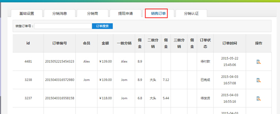 12、微店WAS销售订单的展示,在‘微店管理’->‘销售订单’把本店以及下级销售的订单列表展示出来。