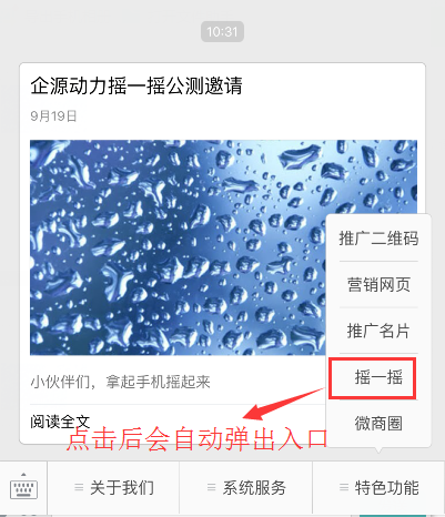 近期有比较多的客户在使用摇一摇赛马功能,为了提升用户体验,企源动力团队对参与摇一摇赛马入口做优化升级,升级后,可以直接通过微信公众号低部菜单设置菜单关联入口,如下图: